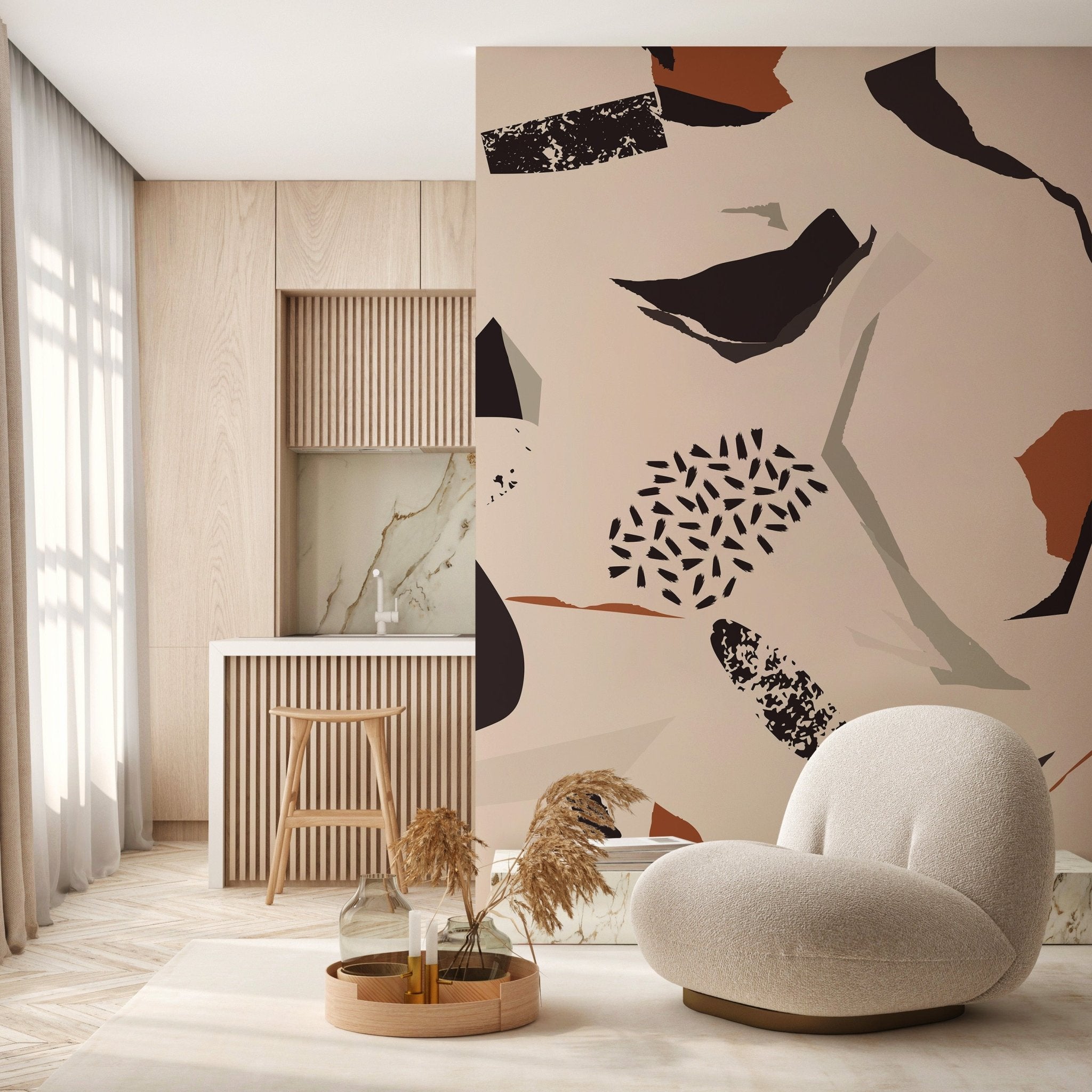 Easy-to-join strips. The wallpaper is delivered pre-cut to the dimensions of your wall.