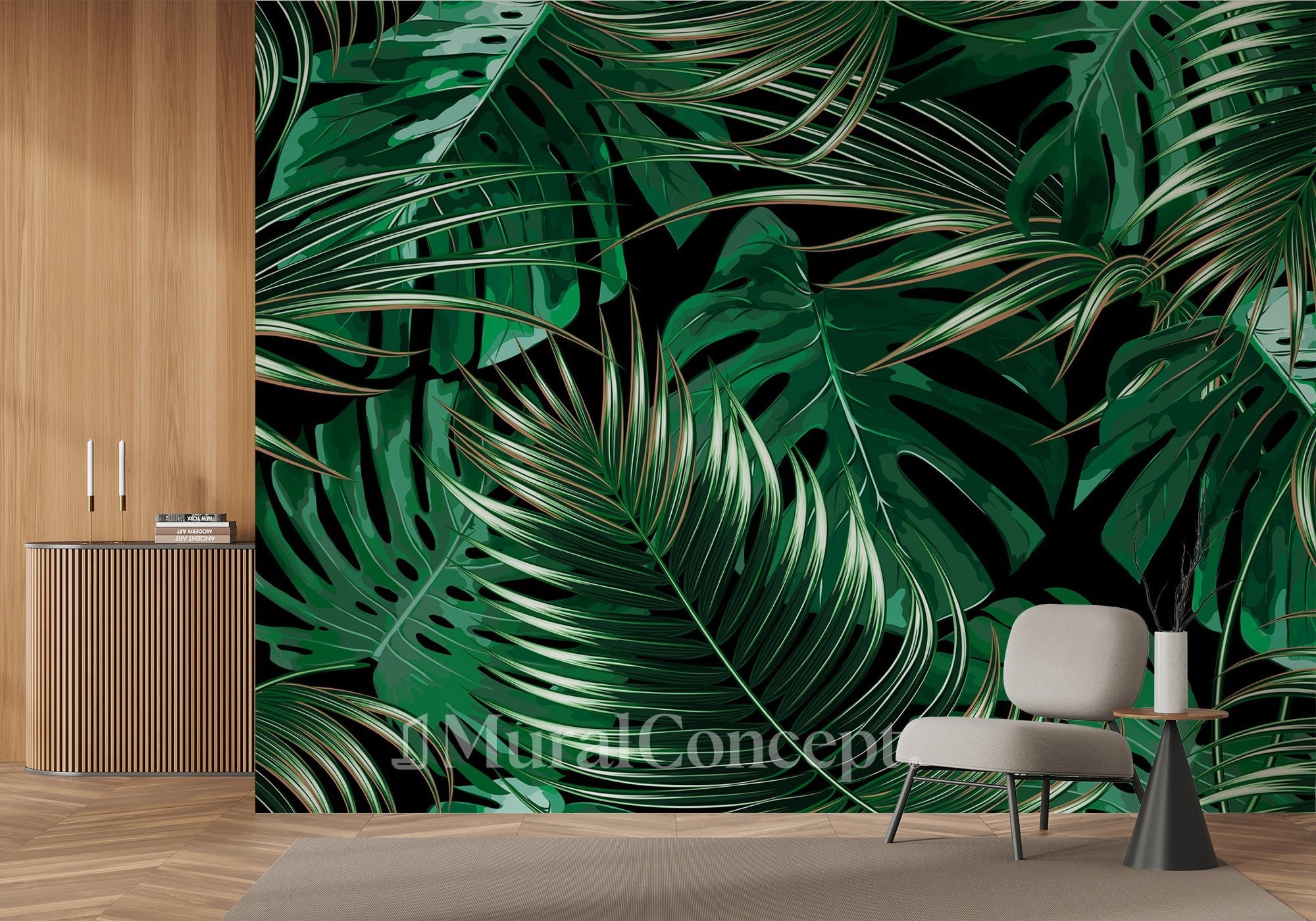 Plongez au cœur de la nature, avec notre papier peint intissé grandes feuilles vertes. Sa couleur vert profond va vous transporter dans un décor tropical dépaysant. Donnez à votre intérieur un look tendance, et raffinée avec ce décor mural sur mesure.