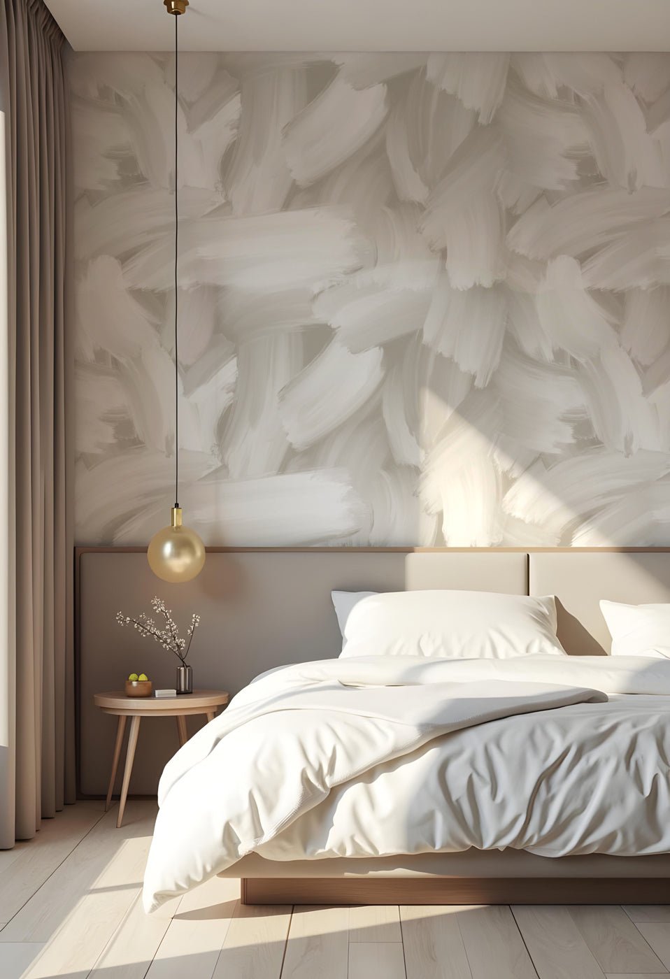 A minimalist wallpaper that's both elegant and textured, ideal for sober, bright decorating that's easy to match.