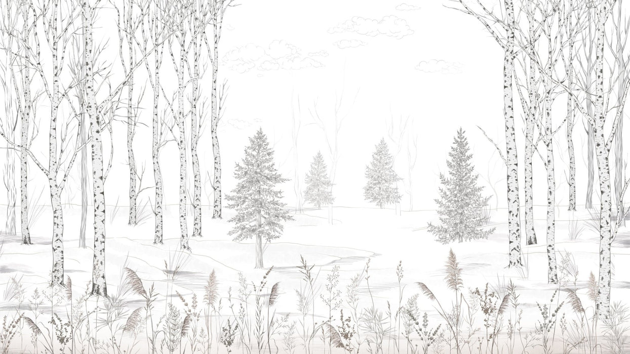 Transformez votre intérieur avec Douceur des Bois, un papier peint panoramique forêt en noir et blanc à l’esthétique élégante et intemporelle. Cette fresque murale XXL représente une forêt de bouleaux et de sapins, capturée dans une ambiance hivernale subtile et raffinée. Son style grisaille unique, inspiré du dessin au trait, apporte profondeur, perspective et poésie à vos murs.