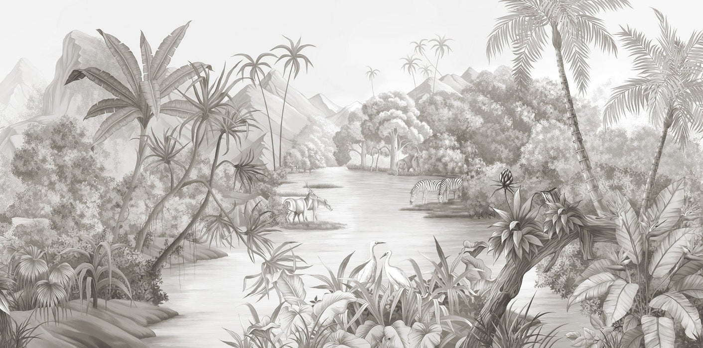Transform your establishment and create an exotic decor with the picturesque jungle restaurant wallpaper. An illustrated, realistic panoramic wallpaper that will fit perfectly in your establishment. The warm colors of this wallpaper make for a welcoming atmosphere. An XXL wall decor ideal for changing your establishment's visual identity in the blink of an eye. Discover our jungle wallpaper collection for restaurants. Our made-to-measure wallpapers are created in France. Our ERP wallpapers are fireproof M1 BS1D0.