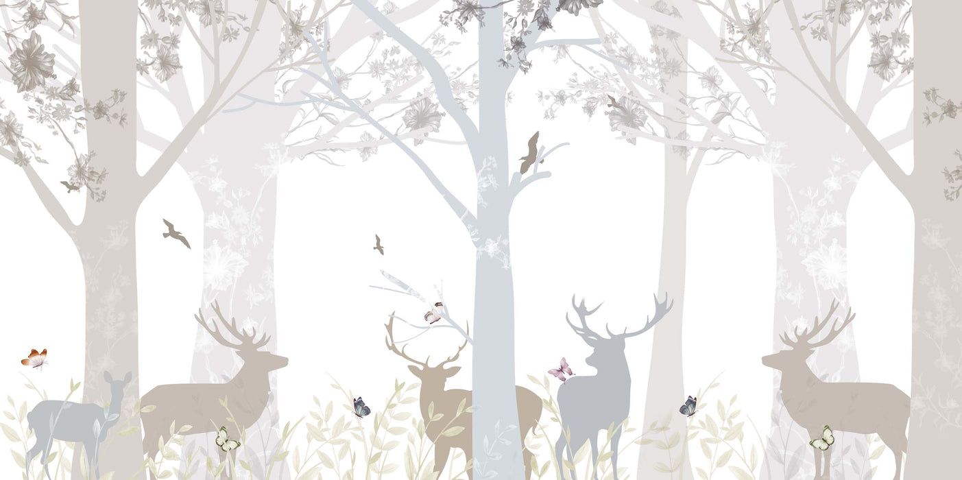 This children's deer clearing wallpaper is perfect for your child's or baby's bedroom. This Scandinavian-inspired illustrated wallpaper is ideal for decorating with taste and softness. An original, personalized wall decoration. This custom-made wallpaper is eco-friendly. Our wallpapers are printed with water-based, PVC-free inks. Buy wallpaper online now.
