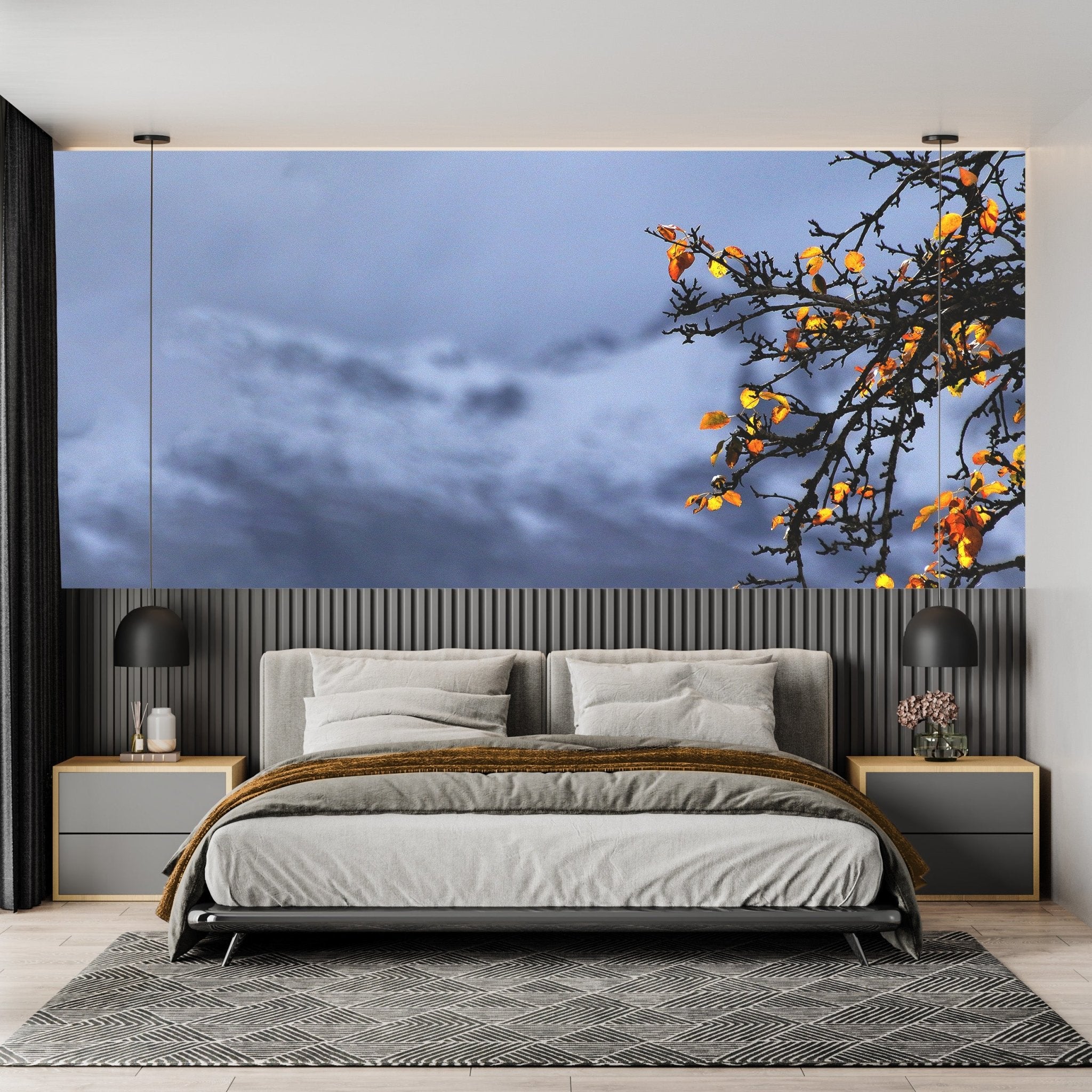 En premier plan, visualisez des branches bourgeonnantes. Un effet focus parfait qui dynamisera votre mur, et créera de la perspective dans votre pièce.