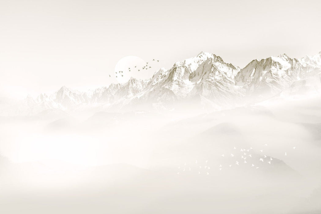 Transformez votre intérieur avec notre papier peint montagne "Mont blanc, lune et oiseau", une fresque panoramique unique qui sublime vos murs avec une vue spectaculaire sur les sommets alpins. Idéal pour une salle de bain, ce papier peint panoramique de montagne vous plonge dans une ambiance chalet, calme et inspirante, directement depuis votre douche ou votre baignoire.