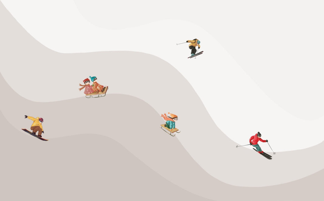 Papier peint enfant skieurs beige