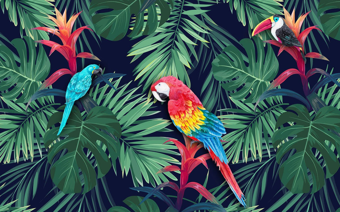 Enter the heart of the jungle with our exotic wallpaper parrot, and discover these fabulous exotic birds. Ideal for a bedroom, a living room, or an office, this wallpaper brings a tropical and exotic touch. Easily create a unique interior with our panoramic wallpaper to your measurementss.