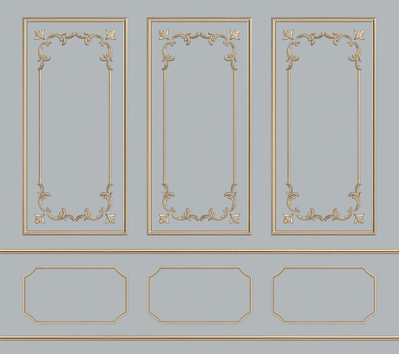 Parisien style gold molding wallpaper is a trompe l'oeil that will bring elegance and refinement to your interior. Its grand design adds light and perspective to your room. A panoramic wall decor that will impress your guests. Easily create a unique interior with our custom non-woven wallpaper.
