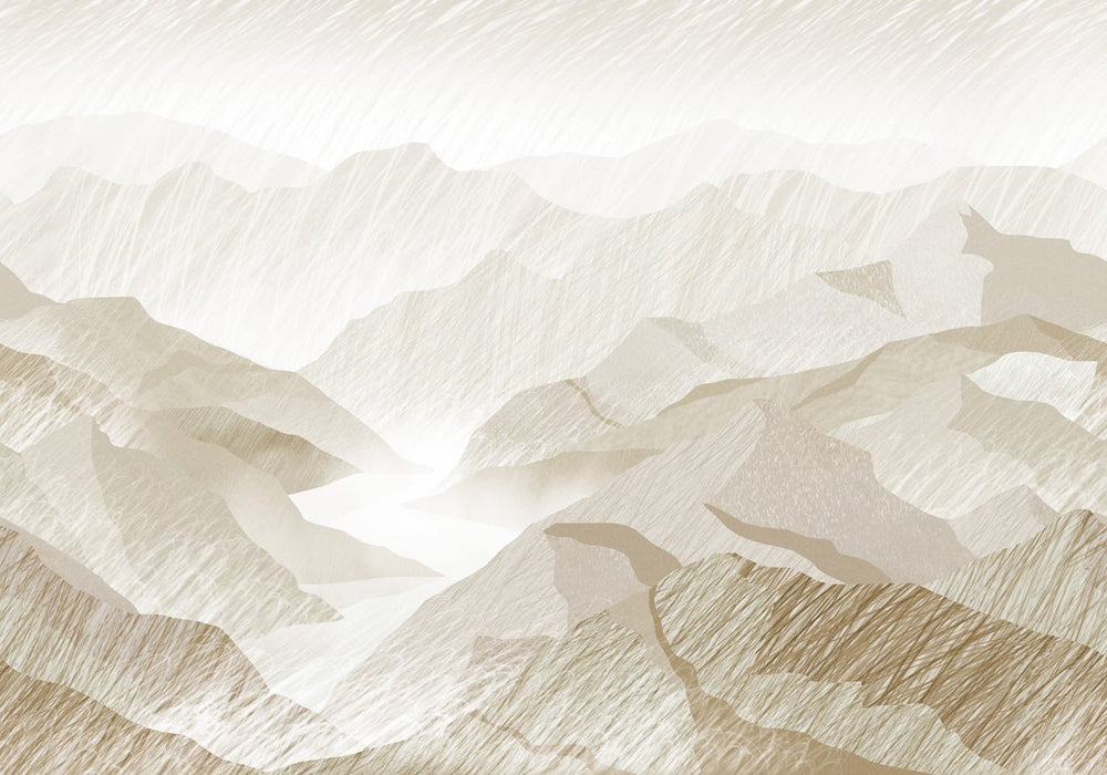 Discover our sepia mountain illustration wallpaper, a panoramic mountain wallpaper that enhances any interior. This sepia-toned wallpaper in warm, delicate shades quickly creates a warm, soft atmosphere. Its line-drawn motif takes us on a journey. This wallpaper can be adapted to any room in your home, and can also be used as a headboard.