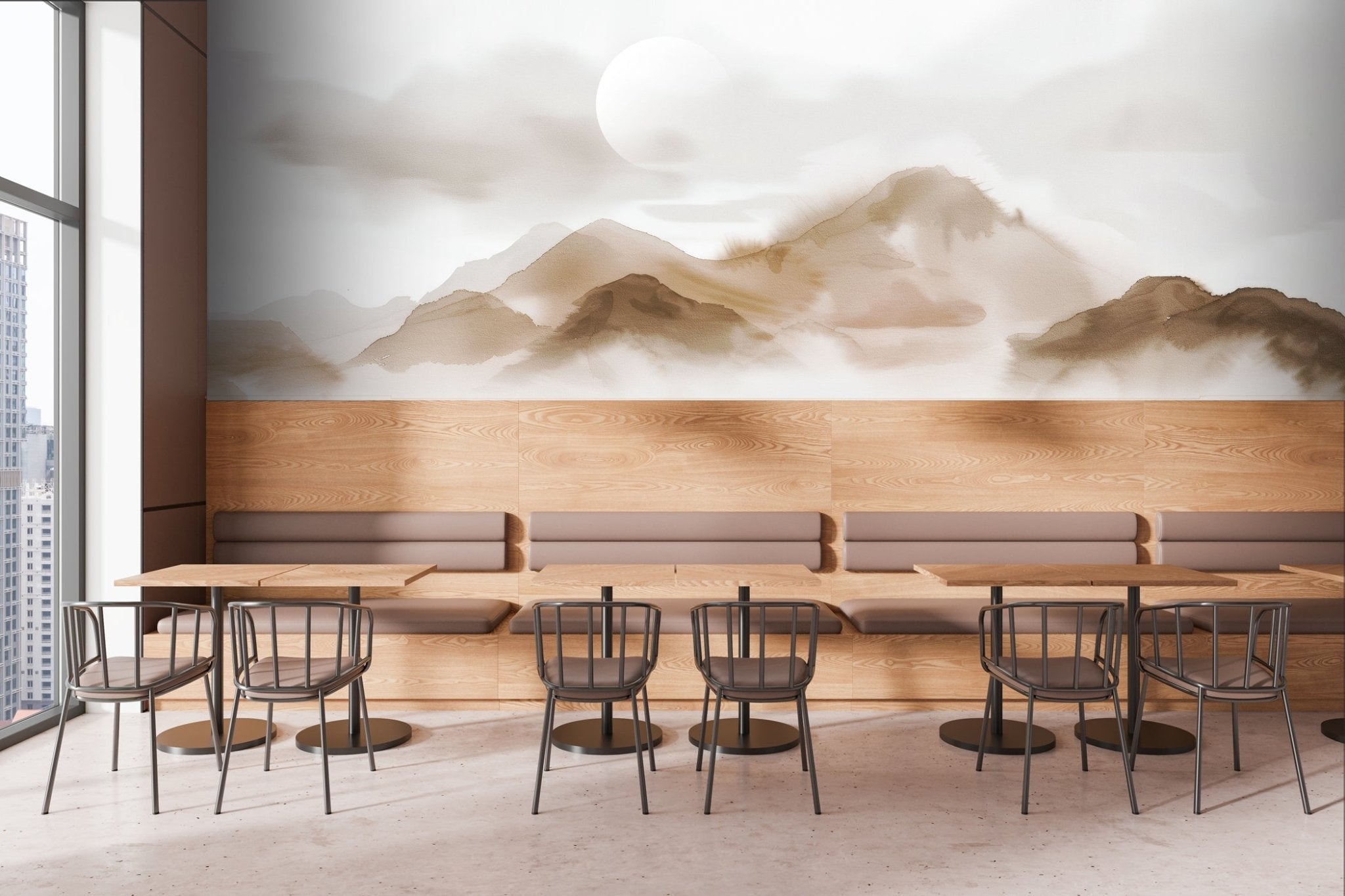 Papier peint montagnes voilées – Lueur sépia
