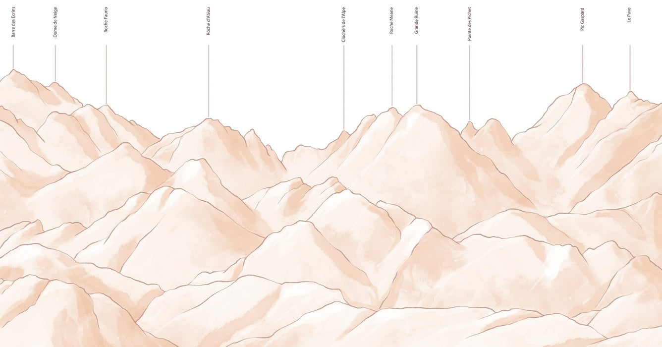 Ce papier peint panoramique sépia massif des Écrins transforme votre décoration murale. Grâce à de décor mural unique et à sa couleur chaleureuse, l'ambiance de votre pièce sera transformée et vous prendrez visuellement de la hauteur. Seriez-vous le prochain alpiniste à gravir et parcourir ces sommets ? Evidemment !