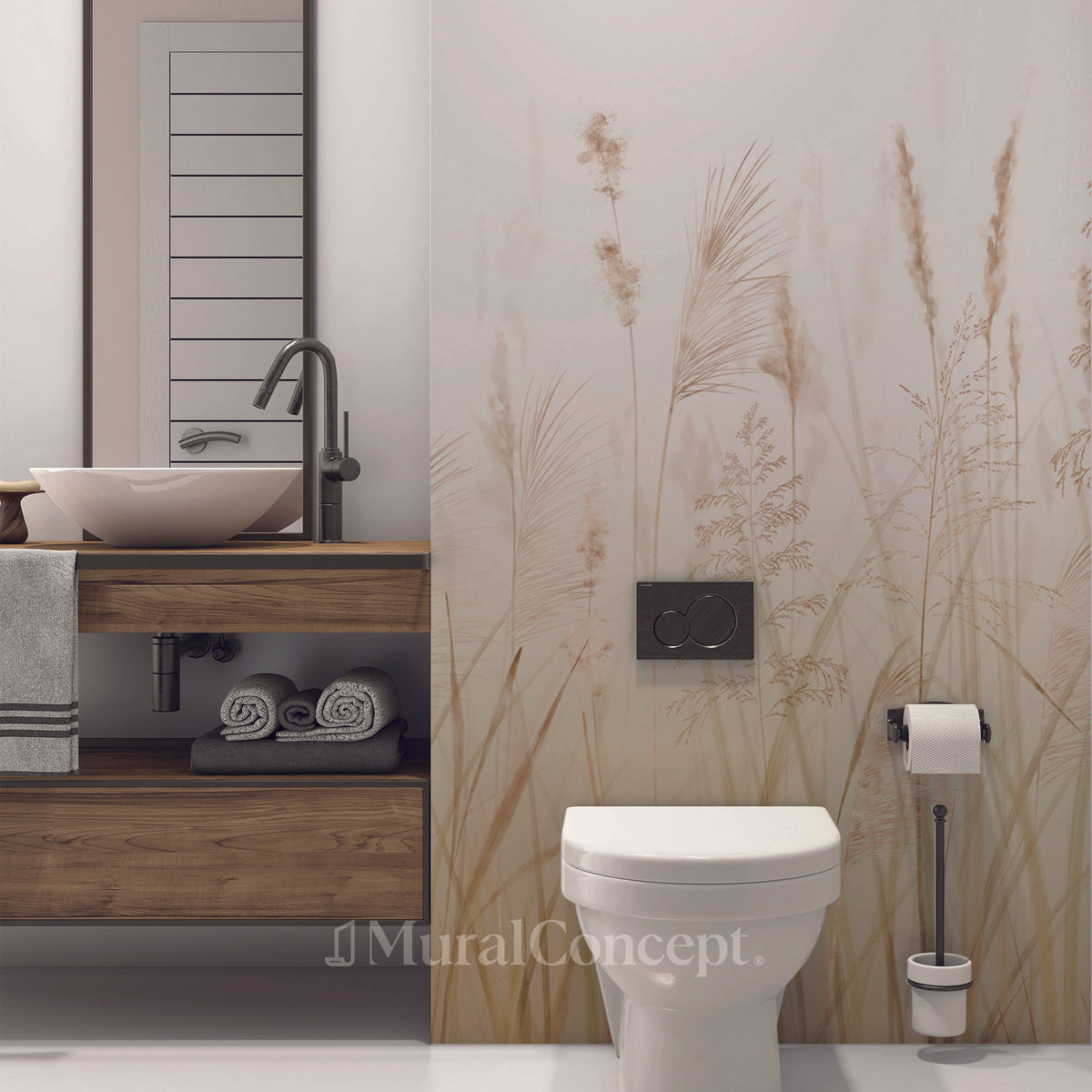 Pour créer un style frais, bucolique, ce papier peint toilette fleur des champs de blé beige est parfait. Dans vos toilettes, ce papier peint sur mesure apportera à la fois de la luminosité, du style et une touche sophistiquée à votre décoration.