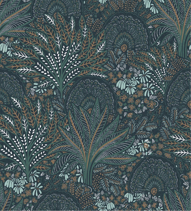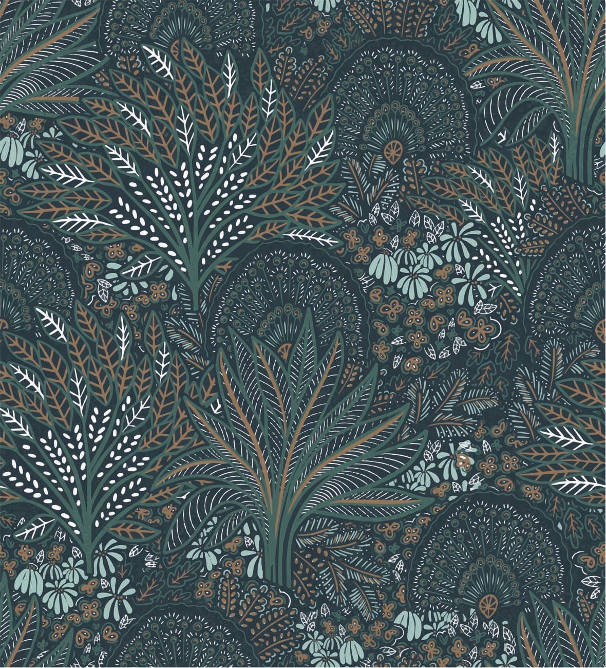 Papier peint wc roue du paon végétale