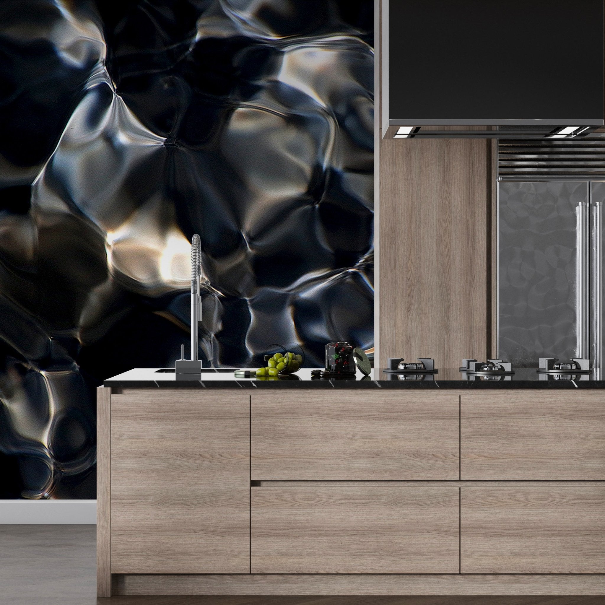 Avec sa représentation artistique du mouvement de l'eau en noir et ses reflets, ce papier peint offre un effet miroir spectaculaire qui transformera votre mur en une œuvre d'art. Un papier peint panoramique qui dynamise votre mur et crée un effet 3D époustouflant. Ce papier peint effet 3D épatera vos invités !