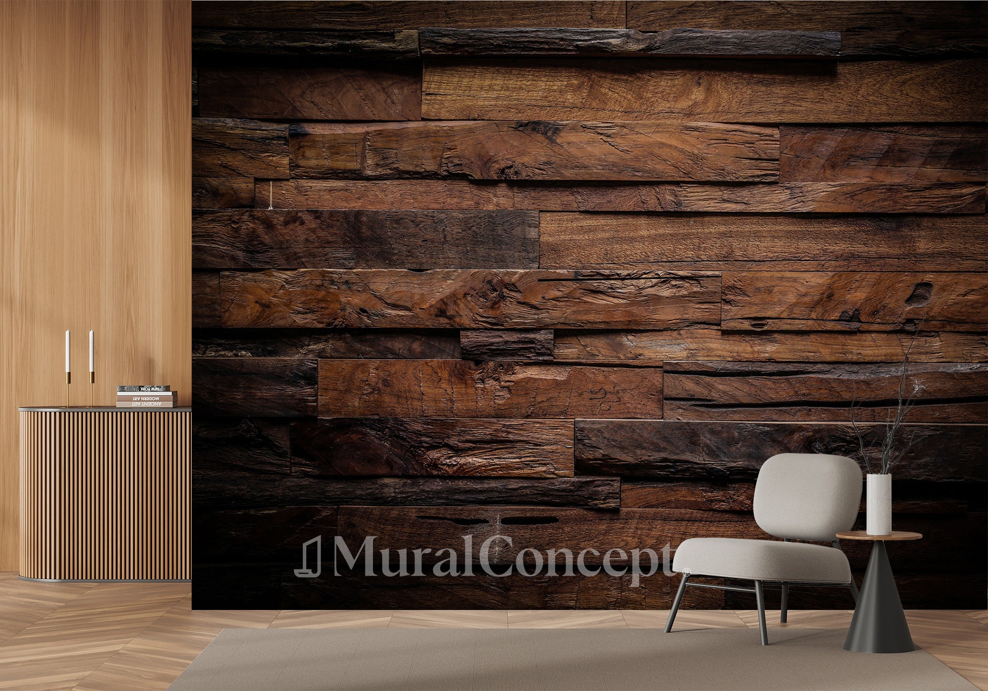Notre papier peint Bois vieilli est un trompe l'œil épatant. Il apportera une touche chaleureuse, naturelle et raffinée à votre intérieur. À noter que ce papier peint n'est pas en relief. Apportez du cachet à vos murs grâce à ce papier peint bois. Papier peint effet trompe l'oeil, matière bois.