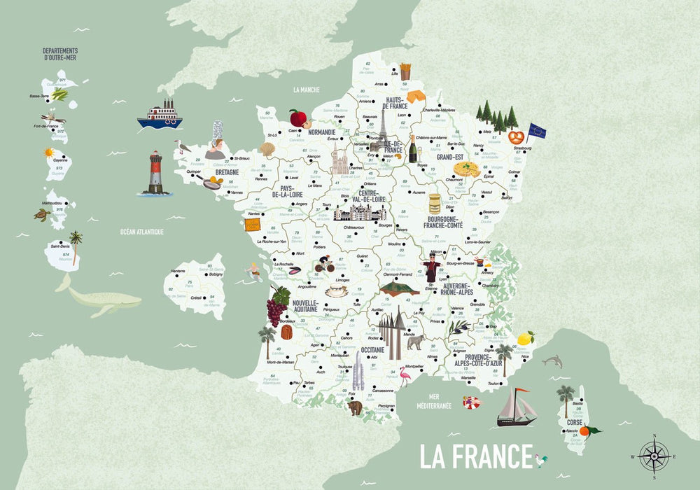 Découvrez notre papier peint carte de France enfant vert. Cette carte de France permet aux petits et grands d'apprendre la géographie de la France facilement. Ce papier peint carte du monde illustré permet de connaître les spécialités des régions ou des départements. Un papier peint ludique, facile d'apprentissage et joliment illustré qui met en lumière toutes les richesses de la France : monuments, alimentation, montagnes, fleuves, département d'outres mer… Comment ne pas craquer pour cette fresque murale carte de France ? Ce décor panoramique est d'un style doux, scandinave, proposé en trois couleurs. Il est idéal pour créer une atmosphère relaxante, propice à l'endormissement, mais aussi bien pensé pour faciliter l'apprentissage et donner l'envie à toute la famille de découvrir les quatre coins de la France. Créez facilement une décoration unique avec ce papier peint sur mesure ! Comme nous sommes convaincus que vous allez l'adorer. Tous nos papiers peints sont Eco-friendly, Kids Friendly. Ils sont respectueux de l'environnement et des intérieurs. Posez ce papier peint panoramique carte de France dans la chambre de votre enfant, dans une salle de jeux ou encore dans une salle de classe ! Les enfants seront émerveillés.
