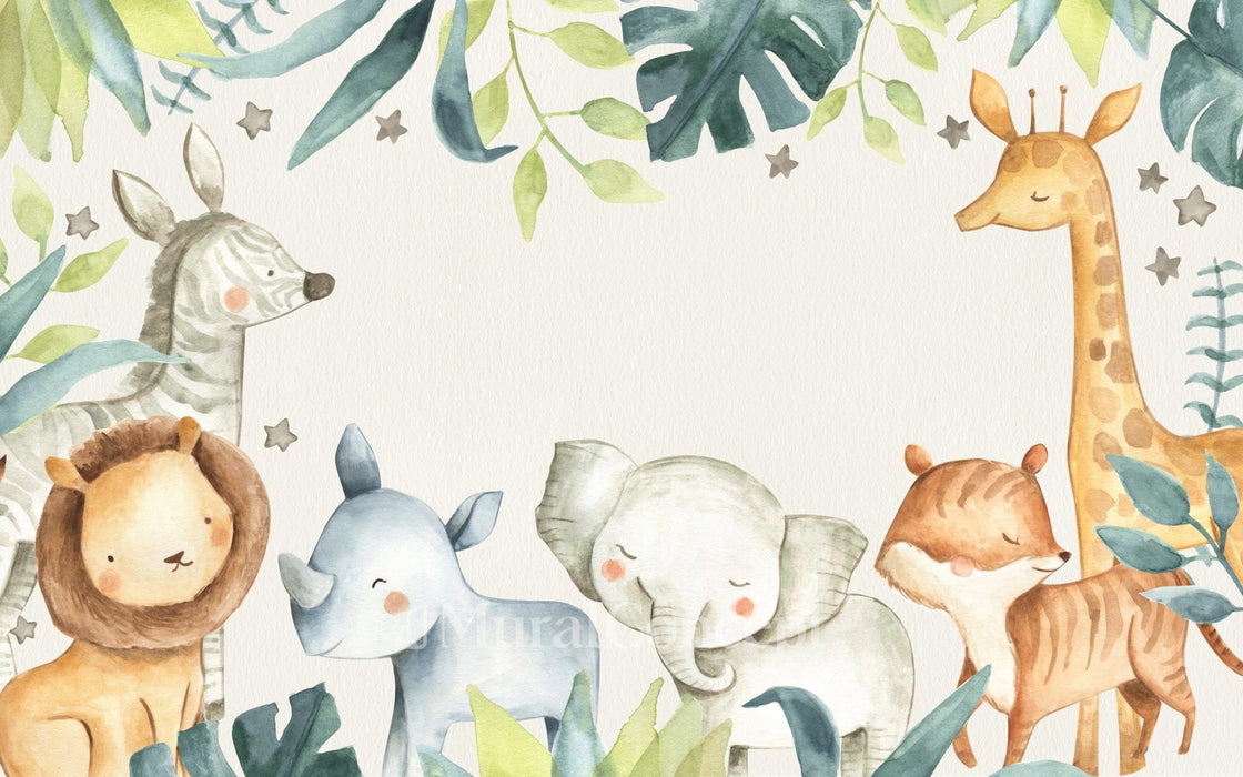 Faites entrer la douceur dans la chambre de votre enfant grâce à ce papier peint aux douces couleurs et motifs bébés animaux de la jungle. Les tendres motifs à l'aquarelle vont apaiser votre enfant. Lumineux et aux tons nordiques cette fresque murale convient aux chambres d'enfants et de bébés. Créer facilement le monde imaginaire qu'il a toujours rêvé avec notre papier peint panoramique à vos mesures.