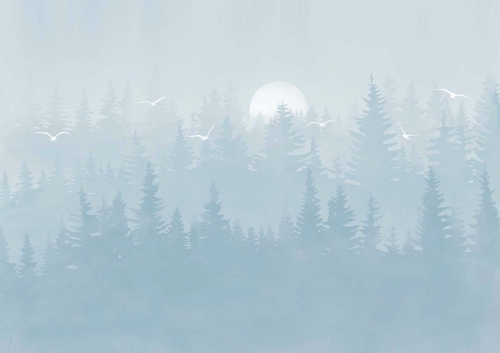 Papier peint chambre enfant forêt scandinave bleu moonlight