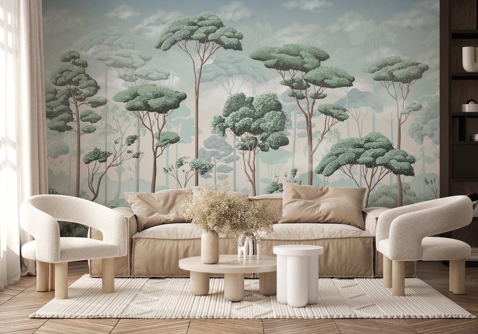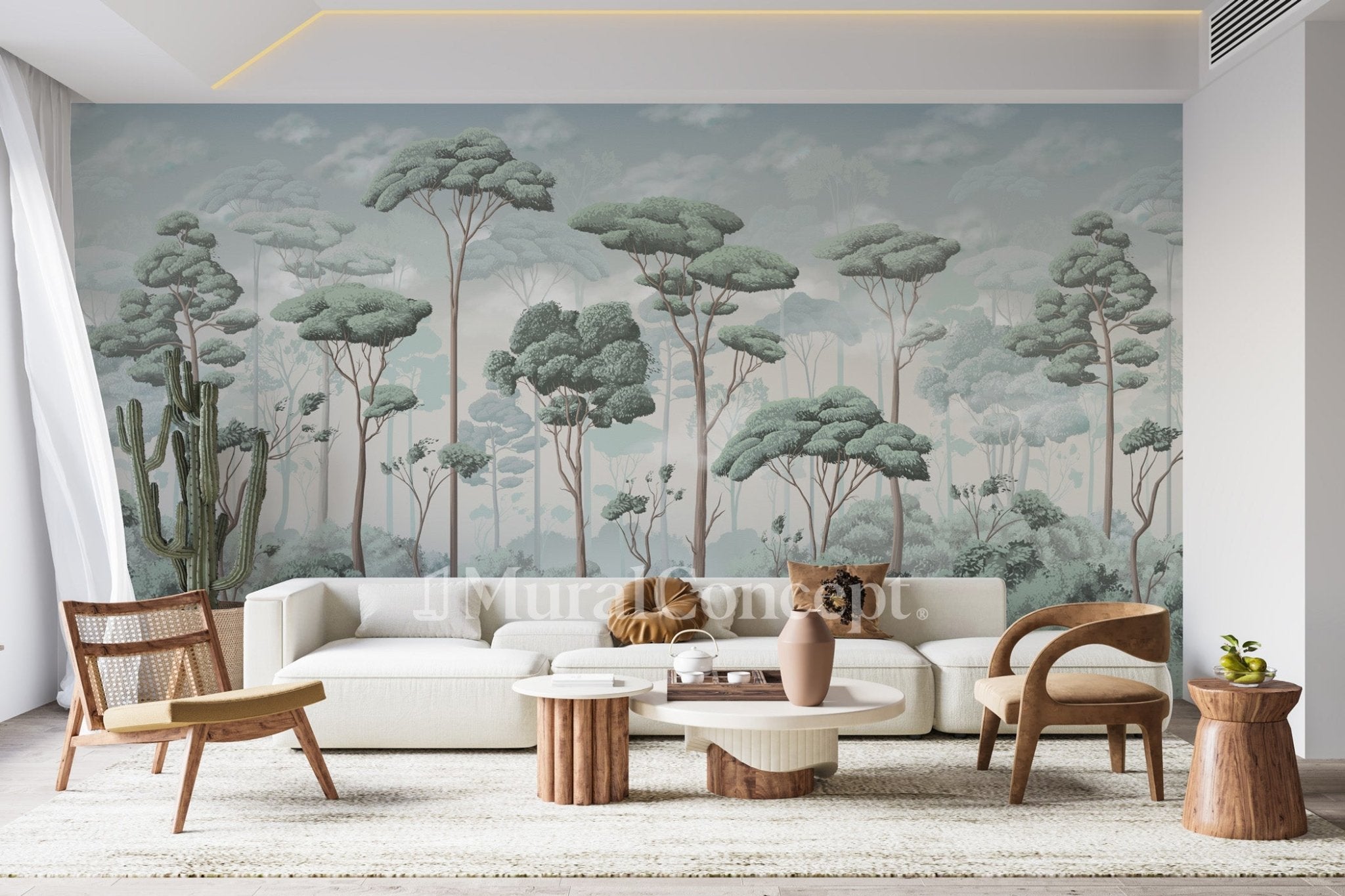 Plongez au cœur de l'univers délicat et raffiné d'une forêt de pin avec notre papier peint panoramique pinède volupté. Cette tapisserie murale réalisée sur mesure va sublimer votre intérieur. Une note élégante, artistique pour ce papier peint réalisé comme une peinture. Ce décor mural est composé d'un bouquet de grands arbres dessinés dans une déclinaison de bleu et de vert. Ce papier peint panoramique trouvera sa place dans tous les pièces de la maison. Il est idéal pour les lieux professionnels comme les halls d'hôtels, les chambres d'hôtes, les salles de restaurants. Achetez dés maintenant votre papier peint panoramique sur mesure, français et éco-responsable.