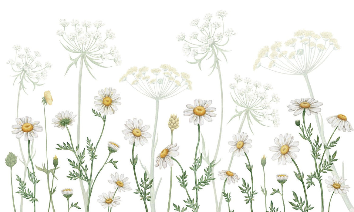 Les marguerites délicatement dessinées au bas de la fresque murale offrent une touche subtile de nature qui respire la fraîcheur. L'esthétique douce et détaillée ajoute une note de charme dans votre déco d'intérieur, tout en conservant une atmosphère apaisante.