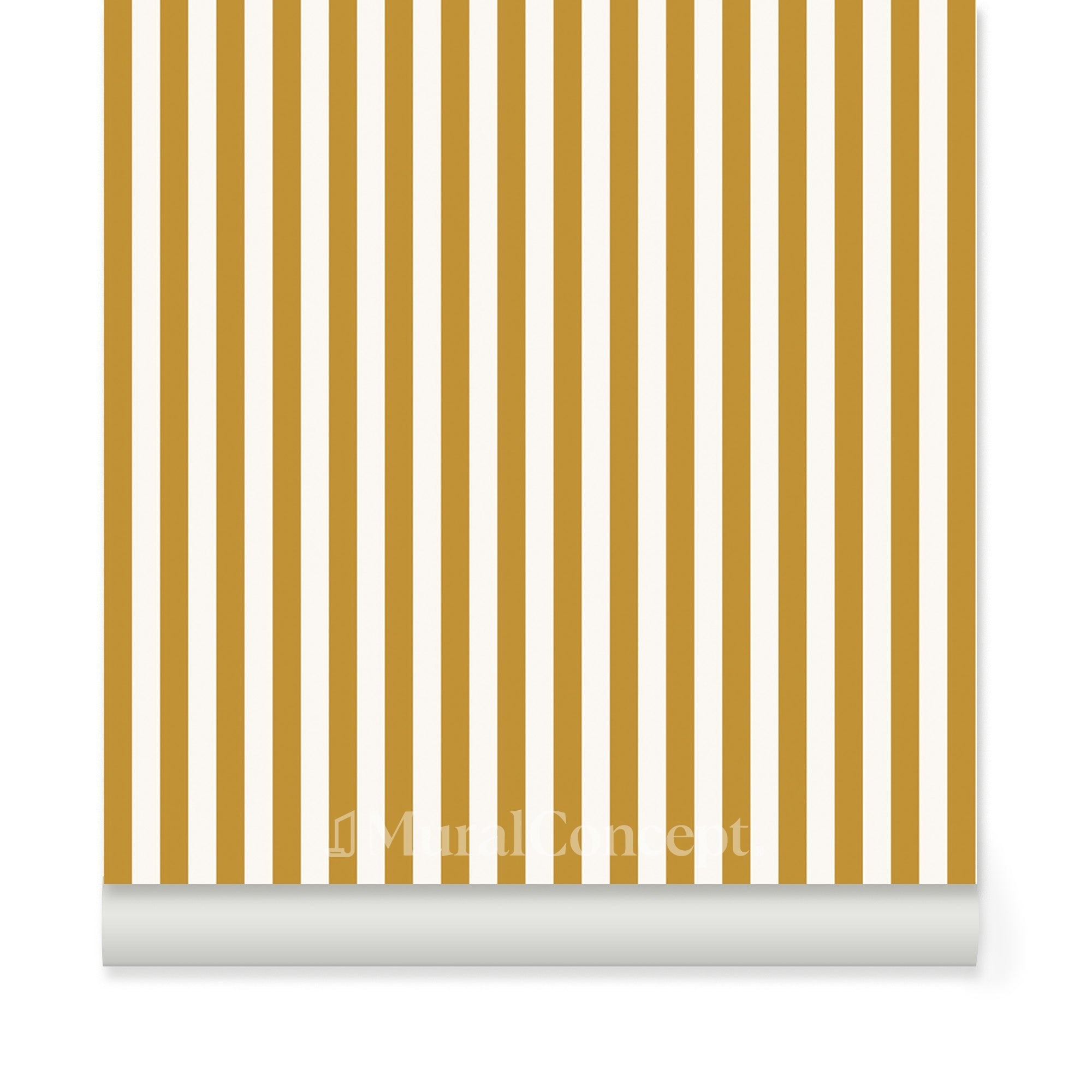 Sublimez votre décoration vintage avec ce papier peint rayure rétro jaune moutarde. Un papier peint rouleau rayure qui fera tourner les têtes. Le jaune moutarde est très tendance, et revient en force dans nos éléments de décoration d'intérieur. Décorer avec un papier peint rayure permet d'agrandir visuellement l'espace.