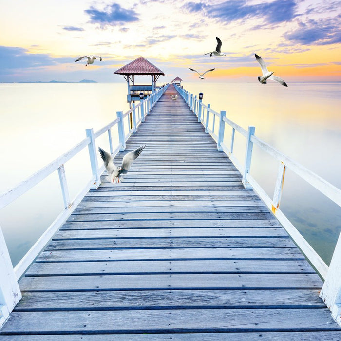 Le papier peint trompe l’œil Ponton crée de la perspective dans votre intérieur. Ses tons claires apporteront beaucoup de luminosité à votre pièce. Ce papier peint panoramique vous invite vers un ponton fictif 3D qui semble bien réaliste, un décor mural qui impressionnera vos invités. Créer facilement un intérieur unique avec notre papier peint trompe l'œil intissé réalisé sur mesure.