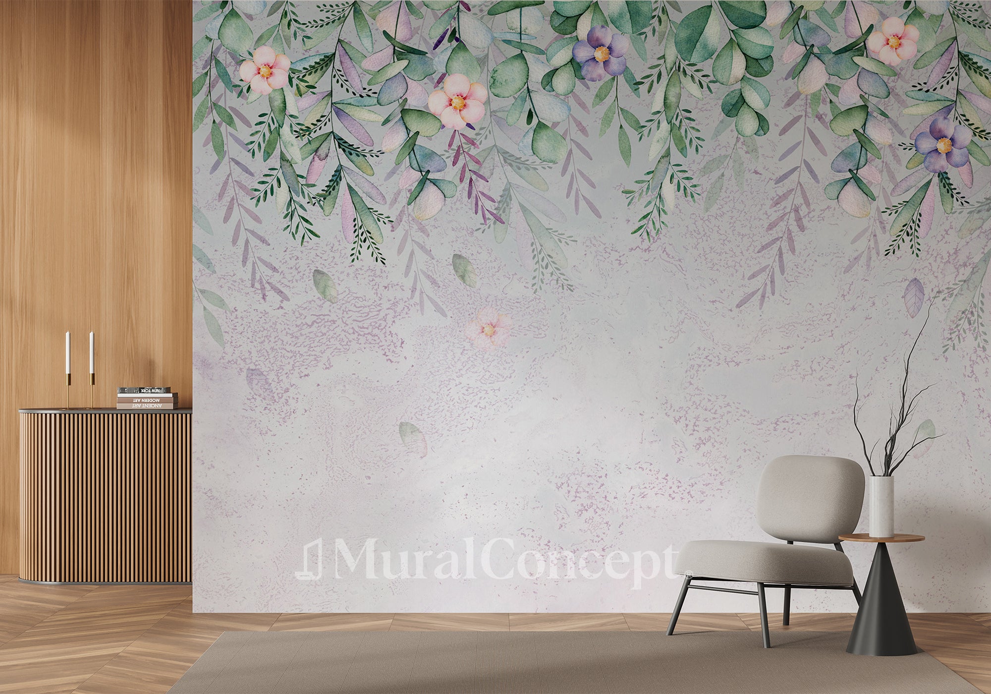 This romantic panoramic plant wallpaper brings a touch of freshness to your interior. Ideal for a bedroom, living room or office, this non-woven wallpaper is refined. The romantic feel is accentuated by the watercolor floral motif, making it perfect for a bedhead decoration, or as a wall decoration in a living room. Easily create a unique interior with our custom-made XXL wallpaper.