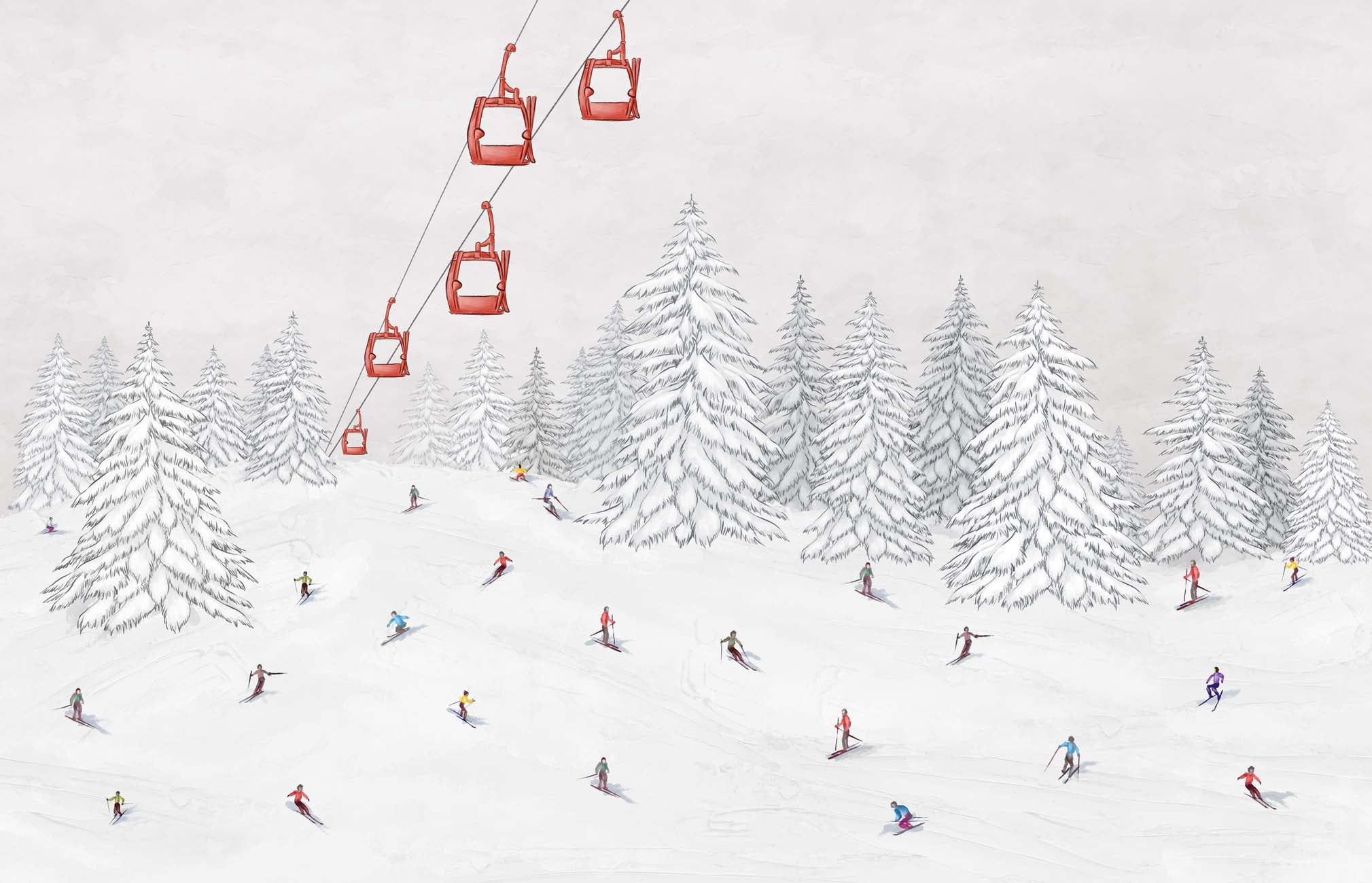 Papier peint télécabine skieurs colorés