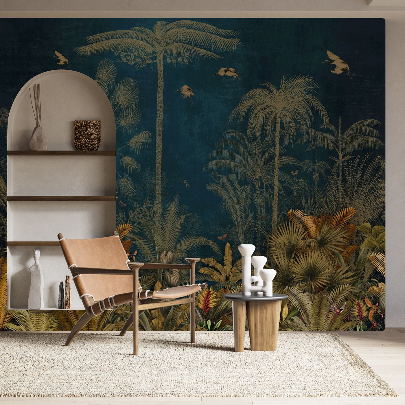 Papier peint jungle gravure bleu, ce papier peint panoramique sur mesure est parfait pour intérieur élégant, contemporain avec dessin d'autrefois. Achetez un papier peint panoramique en ligne pour personnaliser votre intérieur. Dans un salon, dans une chambre, ou dans un bureau, ce décor mural panoramique apportera à la fois du style et une touche sophistiquée à votre décoration.
